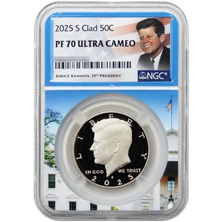 → 2025 S Clad Proof Kennedy Half Dollar NGC PF70 UC White House Core Portrait Label